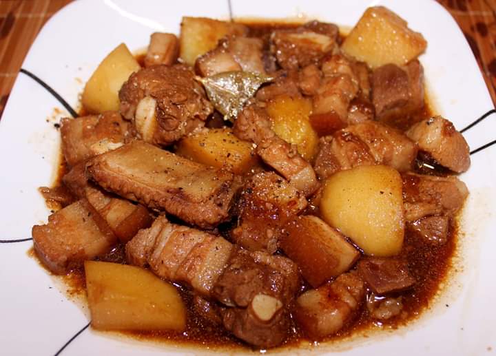 Pro tip: Do not stir the mixture right after adding the vinegar while cooking. This also goes with other vinegar-based food such as Paksiw (a stew in vinegar). The vinegar will not be cooked properly. Hence, the result would be sour and all you can taste is the raw vinegar. Unless that’s what you prefer. Stir the mixture only after it started to bubble up. That’s why it’s important to turn the heat down to avoid burning and to make the meat tender.